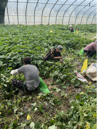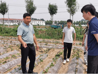 随后,队员们乘坐三轮车前往移栽的土地进行参观考察,需要再次移栽到土地里的薯苗会由工人进行统一插苗工作。来到农地里,阳光异常强烈,但是工人们仍然勤劳地工作着,工人们说,只要能够培育好甘薯,就能推动高庄村甘薯产业向前迈进一步,俨然一幅力尽不知热,但惜夏日长的景象。