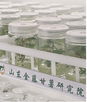 7月6日一早,队员们便开始投入到调研活动中,按照工作计划,调研团队一行来到济宁金藤薯业科技有限公司,在汶上县第九届政协委员、金藤薯业总经理刘文学先生的带领下,团队成员参观了高庄村甘薯产业园区的发展状况。首先,参观研究室,研究室是甘薯诞生的第一步。刘文学向队员们介绍到,传统的甘薯培育方式不适合大规模生产,若经历多代的培育,种薯会积累大量的病毒,这不利于薯苗的生长,同时对于人体健康也存在一定的问题。同时,传统的培育很难创新出新的薯类品种,很难吸引消费者的眼球。在这样的契机下,刘文学决定成立一所甘薯研究院。研究院依托公司,通过提供精密的设备,与中国农业大学等高校的师生建立密切合作,在实验室大量培育出可移栽的薯类幼苗。幼苗移栽到大棚前,还需要经历一轮严格的筛选流程,只有质量合格的幼苗才能被移栽,这也是幼苗生长的第一阶段也是至关重要的阶段。