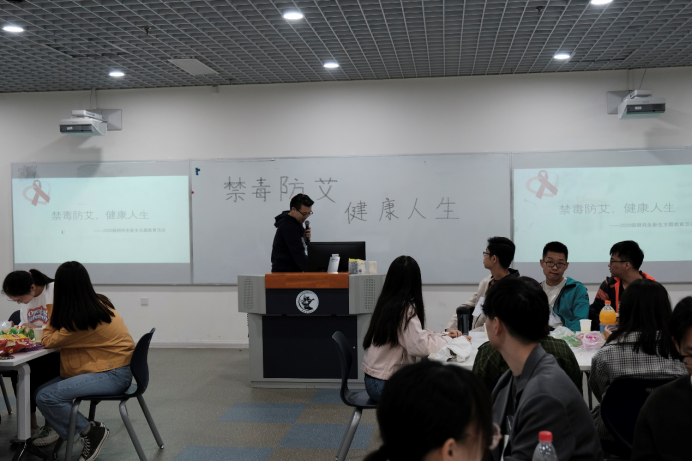 为深入学习贯彻全国教育大会、全国高校思想政治工作会议、全国研究生教育会议精神,进一步加强我校2020级研究生新生教育,引导新生尽快适应大学生活,坚定理想信念,在304am永利集团官网领导和老师们的大力支持下,2020级电子信息专硕班团委共同组织了“禁毒防艾,健康人生”研究生新生主题教育活动。活动于10月7日晚在学院楼6号楼106举行,由班长刘泽辰主持。