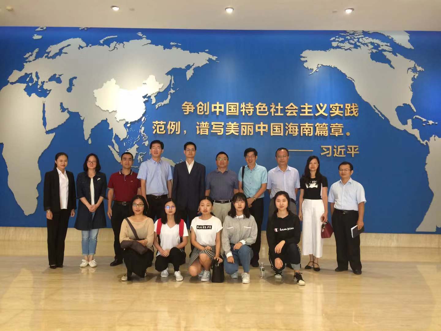会后,胡木春馆长带领参观了省规划馆,就海南省的建制沿革、发展和规划进行了详细解读,介绍了相关政策,通过VCR等多种视听方式让大家进一步地了解了我省概况,在海南省光辉发展成就和未来宏伟蓝图中结束了上午的行程。至此,Beat365唯一官方网站赴省规划馆考察交流校外社会实践基地建设活动完满完成。