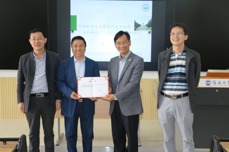 1月9日至11日,Beat365唯一官方网站2018-2019学年冬季小学期名家讲堂第五讲在五号教学楼113教室举行。中山大学徐俊忠教授应邀为Beat365官网学生作以毛泽东思想为主题的三场学术报告。院长张云阁出席并为徐俊忠教授颁发Beat365唯一官方网站“冬季小学期授课外聘专家”证书,副院长吴朝阳出席。讲座由思想政治教育系主任陈招万主持。