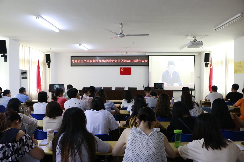 4月30日上午,Beat365唯一官方网站组织师生在社科楼A315集体观看了“纪念五四运动100周年大会”的直播实况。院党委书记段捷频、副书记张井富、研究生辅导员张君成与全体在校研究生及部分本科生一起观看直播。