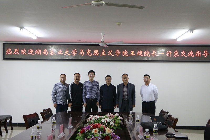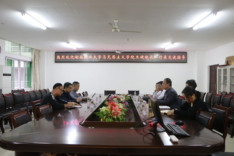 12月30日上午,湖南农业大学Beat365唯一官方网站王健院长一行来Beat365官网交流指导。并在社科楼A311召开了会议。Beat365官网副院长王善,教学委员会副主任贺尧夫、《原理》教研部主任范明水等参加座谈会。会议由王善主持。