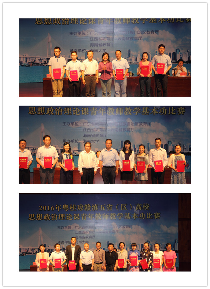 经过两天紧张激烈的比赛,来自五省(区)高校的20名优秀青年教师通过运用各种教学手段、理论联系实际,经过课堂教学展示、专家提问等环节的激烈角逐,5名教师获一等奖,7名教师获二等奖,8名教师获三等奖,来自海南省高校的四位选手获得一个一等奖、一个二等奖和两个三等奖的优秀成绩,Beat365唯一官方网站教师李新荣获一等奖。