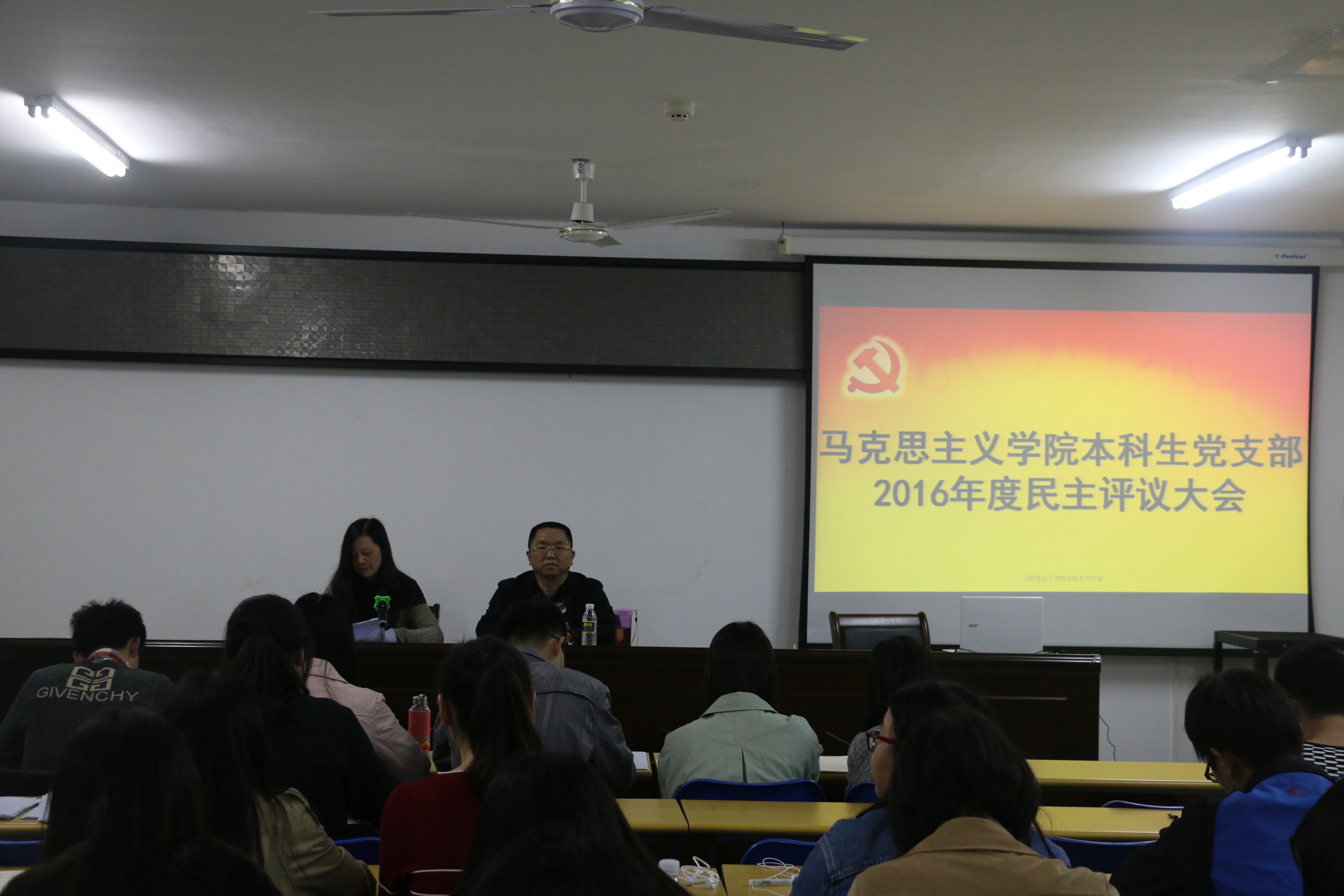 11月29日下午,Beat365官网本科生党支部在学院会议室召开了民主评议党员工作会议。学院党委书记段捷频出席,本科生党支部书记周郭军,马院本科生全体党员及部分学生群众参与。会议由周郭军主持。