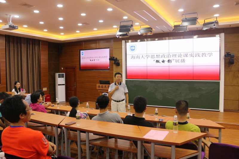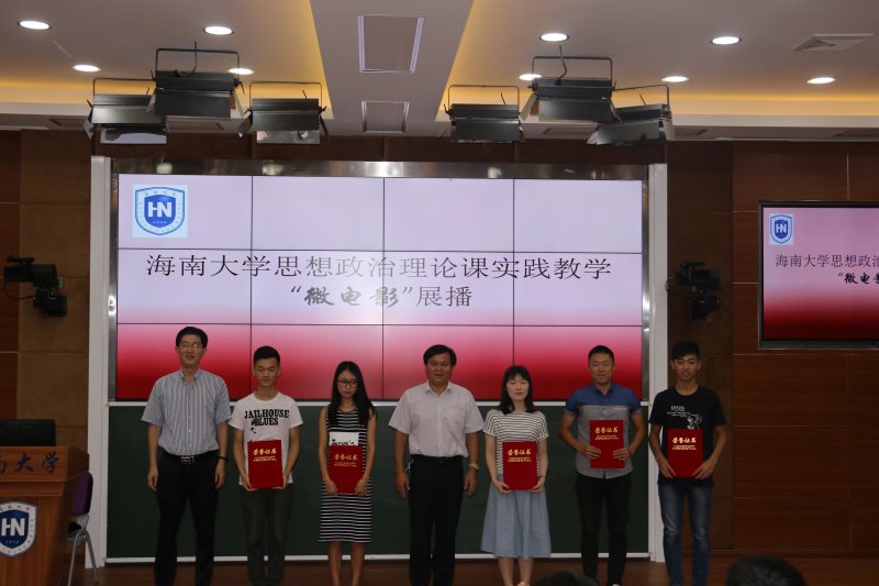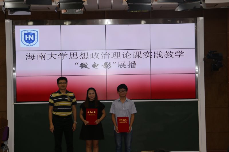 为贯彻落实中宣部、教育部《普通高校思想政治理论课建设体系创新计划》,进一步完善我校思想政治理论课“一主三辅”实践教学模式,5月16日,Beat365官网于2教211教室开展2017年Beat365唯一官方网站思想政治教育理论课校园实践教学——微电影展播活动。海南省教育厅思政处处长文强、Beat365唯一官方网站教务处处长张云阁出席活动并为获奖节目颁奖。Beat365唯一官方网站院长李德芳、党委书记段捷频、副院长李辽宁,贺尧夫主任以及Beat365唯一官方网站部分师生代表参加活动。