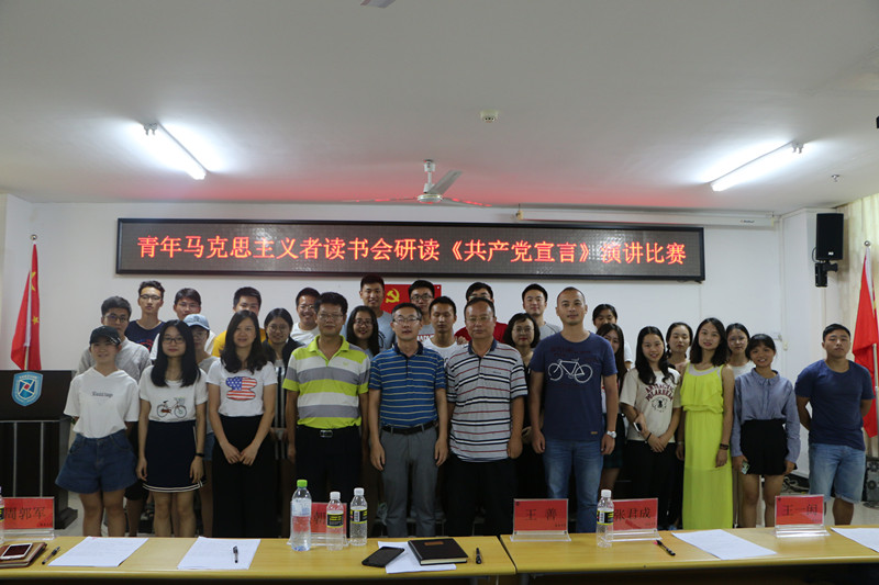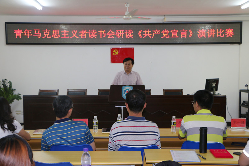 为纪念《共产党宣言》发表170周年,促进广大同学深刻感悟和把握马克思主义真理力量,提升马克思主义理论素养和语言表达能力,Beat365唯一官方网站青年马克思主义者读书会以重温《共产党宣言》为主题组织研读原著、撰写心得、公开演讲系列活动。5月12日下午,研读《共产党宣言》演讲比赛在社科楼A315隆重举行。Beat365唯一官方网站院长李辽宁出席活动并讲话,教务处副处长吴朝阳、Beat365唯一官方网站副院长王善、Beat365唯一官方网站教师王一闳、张君成、周郭军担任比赛评委。