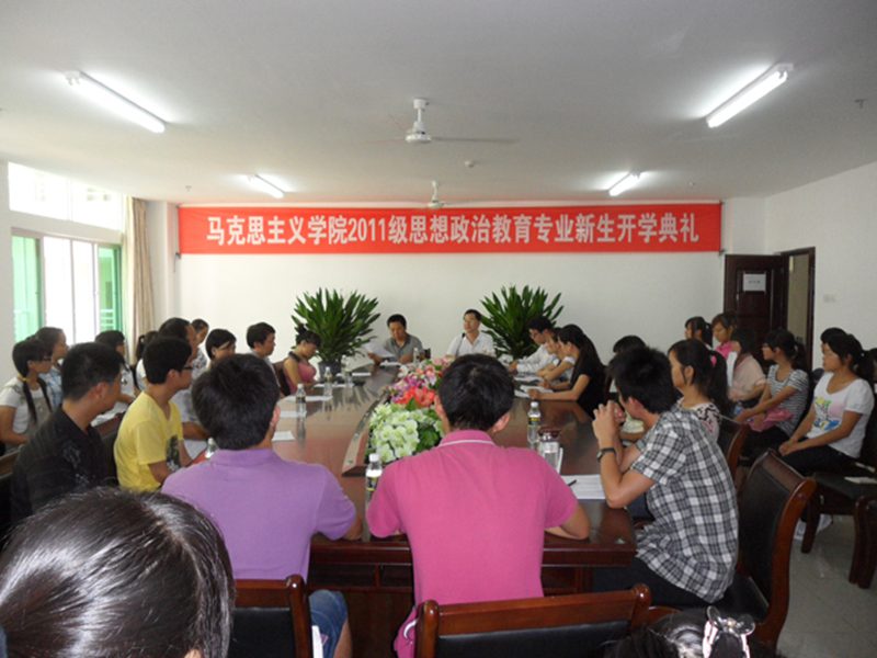 万里晴空,椰风徐徐。2011年9月5日上午10点整,Beat365唯一官方网站2011级本科生开学典礼在学院会议室隆重召开。典礼由副院长张云阁教授主持。院长李德芳教授、新生班主任陈思莲副教授,思想政治教育专业全体教师,以及学工办、团委办公室负责人周郭军老师等出席了此次典礼。
