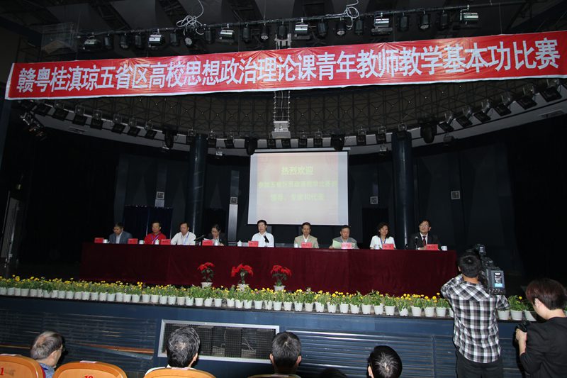 2012年10月16-17日,第四届赣粤桂滇琼五省区高校思想政治理论课青年教师教学基本功大赛在南昌航空大学隆重举行。教育部社科司司长杨光、副司长徐维凡,海南省教育工委副书记麦浪,江西、广东、广西、云南的教育工委、教育厅有关负责人出席了此次活动。本届比赛由江西、广东、广西、云南、海南五省区教育厅主办,江西省委教育工委、江西省教育厅承办,南昌航空大学、南昌大学承办,来自五省区 20名优秀青年教师参加了比赛。大赛组委会邀请了中国人民大学Beat365唯一官方网站院长,博士生导师秦宣教授、华中师范大学政治研究院博士生导师俞思念教授、海南省社科联主席赵康太教授、中山大学教育科学院博士生导师钟明华教授等7位知名专家担任评委。