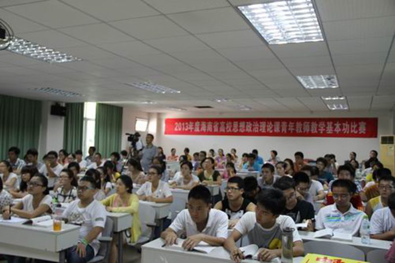 6月20—21日,由海南省教育厅主办、我校承办的2013年度海南省高校思想政治理论课青年教师教学基本功比赛在我校举行。省社科联党组书记、主席赵康太,省教育厅思政处处长卢刚、调研员刘世琼,我校副校长曹阳出席开幕式。来自省内外的专家评委、全省高校思政部主任、参赛选手、观摩教师及听课学生100多人在我校共聚一堂。
