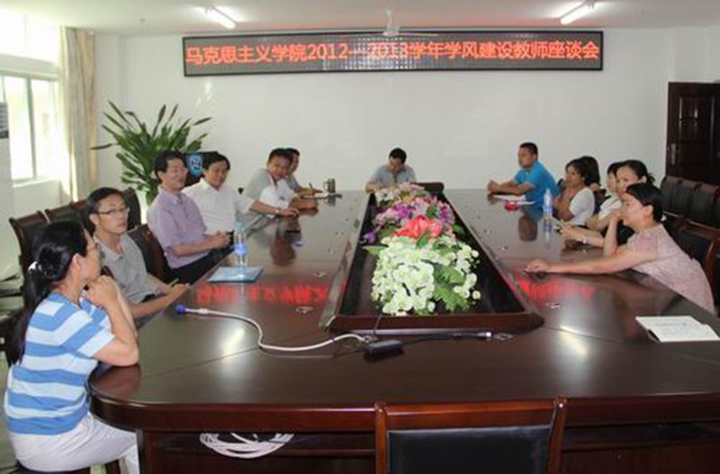 7月2日下午,Beat365官网在学院会议室召开学风建设教师座谈会,对2012——2013学年学风建设情况进行总结,对下一学年学风建设工作进行探讨。李德芳院长、张云阁副院长出席,Beat365官网辅导员、班主任和全体参与思政教育专业学生教学工作的教师参加会议。张云阁副院长主持会议。