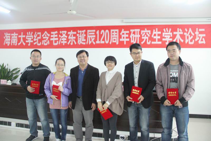 12月26日下午,为纪念毛泽东诞辰120周年和提升研究生的科研水平,由中共Beat365唯一官方网站委员会研究生工作部和Beat365唯一官方网站联合主办,以“毛泽东与中华民族的伟大复兴”为主题的研究生学术论坛在Beat365唯一官方网站多媒体报告厅隆重举行。国务院特殊津贴专家曹锡仁教授出席活动并作主题报告,Beat365唯一官方网站院长李德芳、院党委书记梁谋等领导出席论坛。论坛由Beat365唯一官方网站挂职副院长杨娜主持。 曹锡仁教授的主题报告,以“民族复兴”和“中国梦”为切入点,分析了人类社会的历史发展和选择,启发同学们要以辩证的方法来看待历史和客观地评价历史人物,以提高学术研究方法论水平。他通过旁征博引,深入浅出的演讲,告诉同学们在研究历史人物时,应该放在一定的历史背景下,放在更大的文化环境范围进行评判。他在报告中强调:“中国近代以来最大的梦想就是民族复兴,中国梦的最终实现力量就是未来的你们。” Beat365唯一官方网站院长李德芳在致辞中表示,举办研究生学术论坛,旨在进一步调动研究生的科研热情,为研究生结合时事和前沿问题开展学术研究搭建平台,以后将每年定期举办,希望在学校研究生工作部的支持和指导下,不断扩展范围、提高水平、增强影响力,以打造成为我校研究生学术活动品牌。 Beat365唯一官方网站党委书记梁谋在会上为论文获奖同学颁发了荣誉证书。本次研究生学术论坛共收到主题论文24篇,经过专家组对所有论文进行公正评审,评出一等奖1名、二等奖2名、三等奖3名。其中Beat365唯一官方网站程川同学参加由中共海南省委党史研究室(海南省地方志办公室)、海南省中共党史学会共同主办的“纪念毛泽东同志诞辰120周年”系列征文活动中获得二等奖。 程川、叶俊、尚婷、史旭峰和逄焕学等五位研究生代表在论坛上作主题发言,王善副教授对同学们的论文和发言进行了点评。