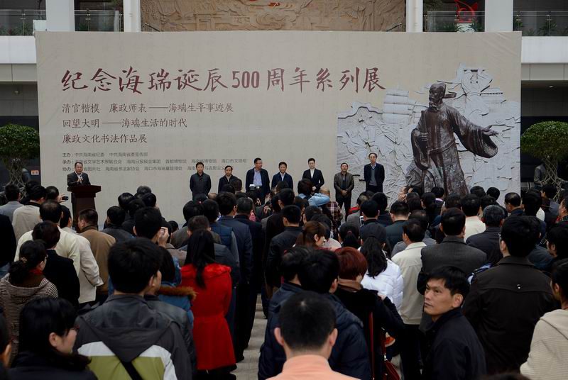 1月15日下午,纪念海瑞诞辰500周年系列展览在海南省博物馆正式开展。系列展览从1月16日起面向公众开放,展览时间持续到春节后。海南省委常委、宣传部部长许俊出席开展仪式并参观了纪念海瑞诞辰500周年系列展览。Beat365官网院长李德芳和部分教师作为协办单位代表参加活动。 经海南省委同意,省纪委、省委宣传部联合举办的纪念海瑞诞辰500周年系列展览,是以“传承海瑞精神,弘扬廉政文化”为主题的系列活动之一。Beat365官网作为协办单位,为活动的顺利开展做了相关筹备工作,学院教师张朔人博士是此次系列展览的总撰稿人。 此次系列展共包括三个部分。其中,《清官楷模 廉政师表———海瑞生平事迹展》通过文物、图片、多媒体技术,多角度展示了海瑞刚正不阿、清正廉洁、耿介忠义的一生。为了使展品更加完善和丰富,主办单位从2013年12月开始,费时一个多月,先后前往广东、浙江、江苏和北京等地,大规模搜集有关海瑞的史料。展览结束后,所有展品将移到海瑞故居。为了方便无法到现场参观的网友了解海瑞的生平事迹,展览还即时开通了网上展厅;现场观众也可以刷二维码登录访问。 此同时,省博物馆与首都博物馆联合承办的《回望大明———海瑞生活的时代》,展览文物104件(套),勾勒明代中晚期社会生活画面,并将海瑞元素置身其中,构建起彼此之间的内在联系。 《廉政文化书法作品展》则收录了我省书法界作品76幅,反映我省广大干部群众学习清官楷模、建设廉政文化的积极精神风貌。