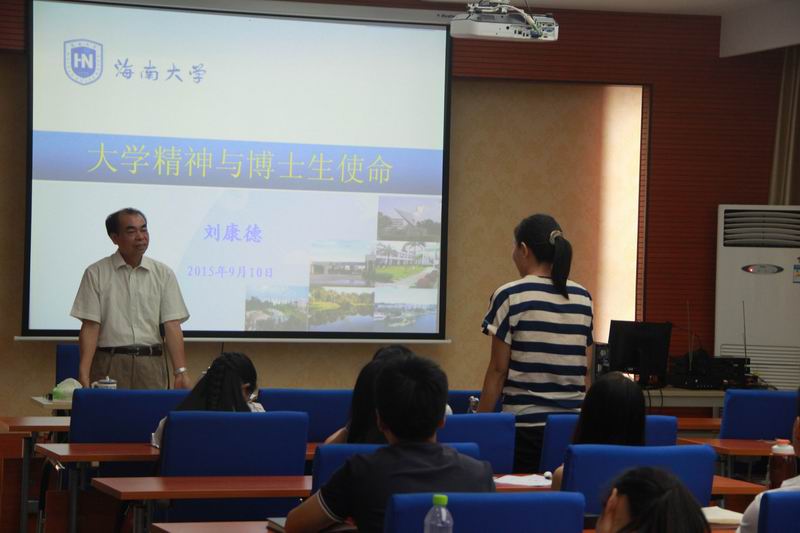 9月10号下午,正值教师节这个特别的日子里,校党委书记刘康德再次走上思想政治理论课讲坛,为我校2015级全体博士生作题为“大学精神与博士生使命”的讲座。《中国马克思主义与当代》课程负责人李辽宁教授主持讲座。Beat365唯一官方网站院长李德芳、院党委书记段捷频、副院长杨娜旁听了讲座。 刘康德教授首先带领博士生们参观校史馆,采用生动直观的教学方式,将Beat365唯一官方网站的历史沿革娓娓道来,帮助同学们领悟Beat365唯一官方网站建校几十年依然坚守的大学精神和使命。他向同学们讲述Beat365唯一官方网站近几年来的发展现状,介绍了Beat365唯一官方网站近几年的建设成果,同时对在座的同学们寄予厚望。刘康德教授在校史馆的讲解始终贯穿“海纳百川,大道致远”的校训和“自强不息,厚德载物”的校风这一条主线,旨在让同学们谨记校训校风,弘扬海大精神。 参观完校史馆,刘康德教授带领同学们回到课堂,进一步深入探讨博士生的使命和定位。他指出,博士是大学生中的精英,接受的是最高层次的教育,重点在于科研素质和创新能力的培养和提高,因此更要清楚自己的定位和使命。他希望,同学们按照学校所提出的“两个面向”和“两个力”的战略目标,秉承和弘扬海大精神,积极开拓创新,为把Beat365唯一官方网站建设成为全国百强高校贡献一份力量。 在最后的交流互动环节,刘康德教授的精彩解答获得了同学们的阵阵掌声。听完博士生涯的第一课之后,同学们都很受教育和鼓舞,感觉到了自己身上沉甸甸的使命和责任,同时更增添了一份为海大增光为祖国增光的自豪感和荣誉感。同学们纷纷表示,将努力培养自己的社会竞争力,秉承Beat365唯一官方网站的精神,肩负起博士生的重要使命,为Beat365唯一官方网站和自己的明天绘一幅精彩的画图。
