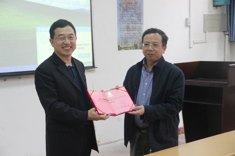 院长李德芳为欧阳教授颁发聘书