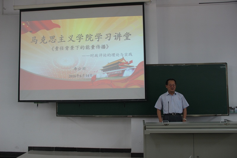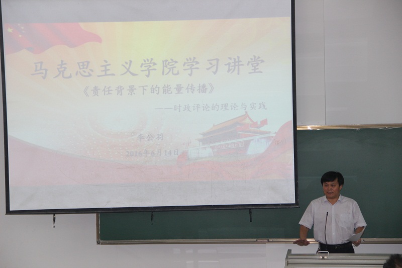 6月14日下午,海南省新闻工作者协会副主席李公羽应邀为Beat365官网学生作题为《责任背景下的能量传播——时政评论的理论与实践》的讲座。讲座由副院长李辽宁主持。