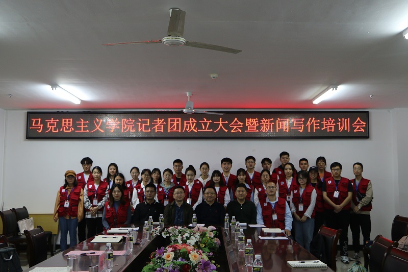 段捷频在会上讲话。他指出,在“两个一百年”奋斗目标的历史交汇期、全党深入学习贯彻党的十九届五中全会精神的重要时期、Beat365唯一官方网站内涵发展升级转型期的关键时候,马院记者团的成立具有特殊的意义。他从学院党建工作、专业建设、课程建设、队伍建设、教学成果、人才培养等方面回顾了学院在“十三五”期间取得的丰硕成果,希望记者团成立后在宣传学院建设发展、提升学院的社会影响力方面积极发挥作用。他代表学院党委就加强学院的记者团建设和新闻传播提出了四点要求,一是要全心全意为广大师生服务,积极宣传中央、省委和校党委的重大决策部署,宣传党的十九届五中全会精神,宣传学院先进典型,深入挖掘广大师生的身边的模范事迹;二是要坚持正确的政治方向和正确的舆论导向,牢牢守住马克思主义意识形态阵地,弘扬主旋律,传播正能量;三是要坚持新闻的真实性原则,使报道准确、全面、客观;四是要加强学习,积极投身实践,提升综合素养,不断增强脚力、眼力、脑力、笔力“四个力”,积极宣传社会主义核心价值观。最后,他宣布Beat365唯一官方网站记者团正式成立。