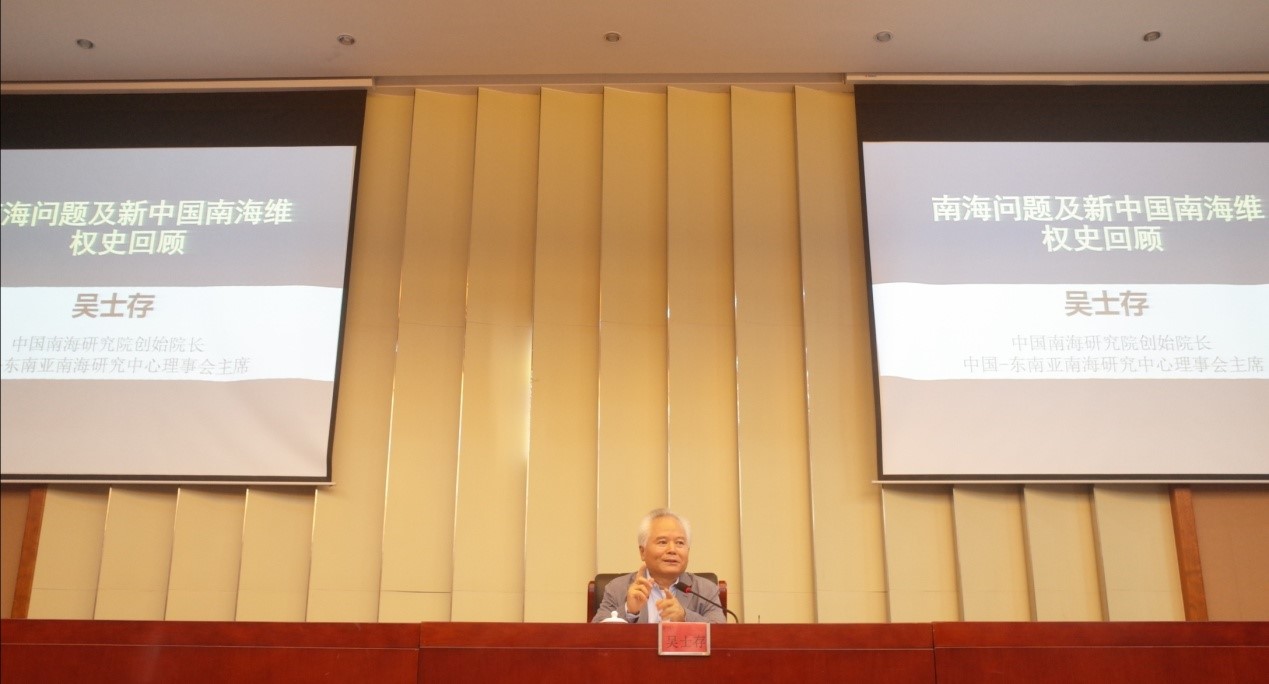 报告会上,吴院长以“南海问题及新中国南海维权史回顾”为主线,从“南海问题的由来与发展、当前南海形势特点、新中国成立以来南海重大维权事件”三大方面为我们做了主题鲜明,内容兼具整体性、现实性以及前瞻性的精彩报告,以更开阔新颖的视角、更精准生动的案例,引导同学们把握当前南海局势和未来的南海形势走向具有十分重要的指导意义与教育意义。特别是在报告中,吴士存院长明确指出,南海问题由来已久,既敏感又复杂,涉及国家和岛礁数量之多、海域范围之广为当今世界绝无仅有。正因如此,中国与东盟国家应以南海作为建设海洋命运共同体的“试验田”,从而真正把南海建成地区国家的共同家园与共享繁荣的合作之海。