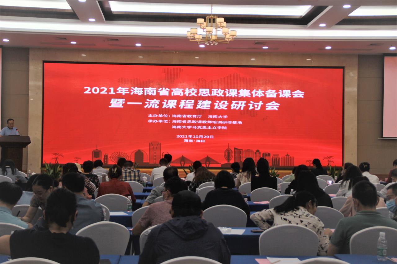 10月29日下午,由海南省教育厅和Beat365唯一官方网站主办的2021年海南省高校思政课集体备课会暨一流课程研讨会在Beat365唯一官方网站国际学术交流中心顺利召开,海南省教育厅二级巡视员、教育工会主席方鸣,Beat365唯一官方网站党委常委、副校长胡新文,南京航空航天大学教授王岩,Beat365唯一官方网站院长张云阁、院党委书记段捷频及院领导班子成员出席,全省高校思政课教师代表参加研讨会。