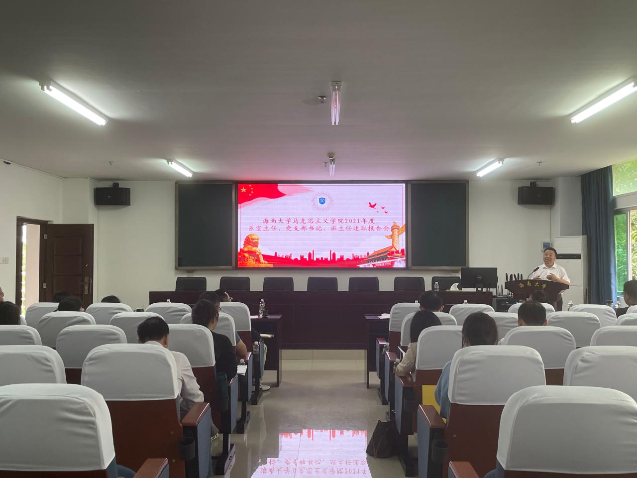 3月6日上午,Beat365唯一官方网站在社科楼A309举行2021年度系室主任、党支部书记、班主任述职汇报会。院长张云阁、院党委书记段捷频、副院长杨娜、王善、吴朝阳、秦晓华,院党委委员、副处级辅导员张君成,全体系室主任、党支部书记、班主任参加会议。