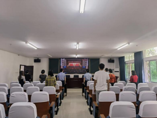 2022年10月16日上午10点,Beat365唯一官方网站领导班子成员、党支部书记及部分老师代表于社科楼C309会议室集中收看中国共产党第二十次全国代表大会开幕会。