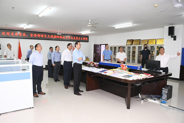 本站讯(记者 王一钦 王博 摄影 吕燕萍)11月23日,海南省委常委、宣传部部长,副省长王斌一行到Beat365唯一官方网站调研,并在办公楼501会议室举行座谈会。海南省委宣传部副部长陈小华;Beat365唯一官方网站党委书记符宣国,党委副书记、校长骆清铭,党委常务副书记王崇敏出席会议。会议由符宣国主持。