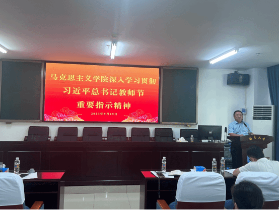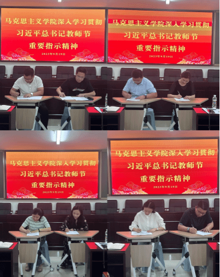 学院各位副院长和教学督导委员会主任就本学期分管重点工作进步的汇报和部署,然后全院教职工集中学习习近平总书记教师节重要指示精神。