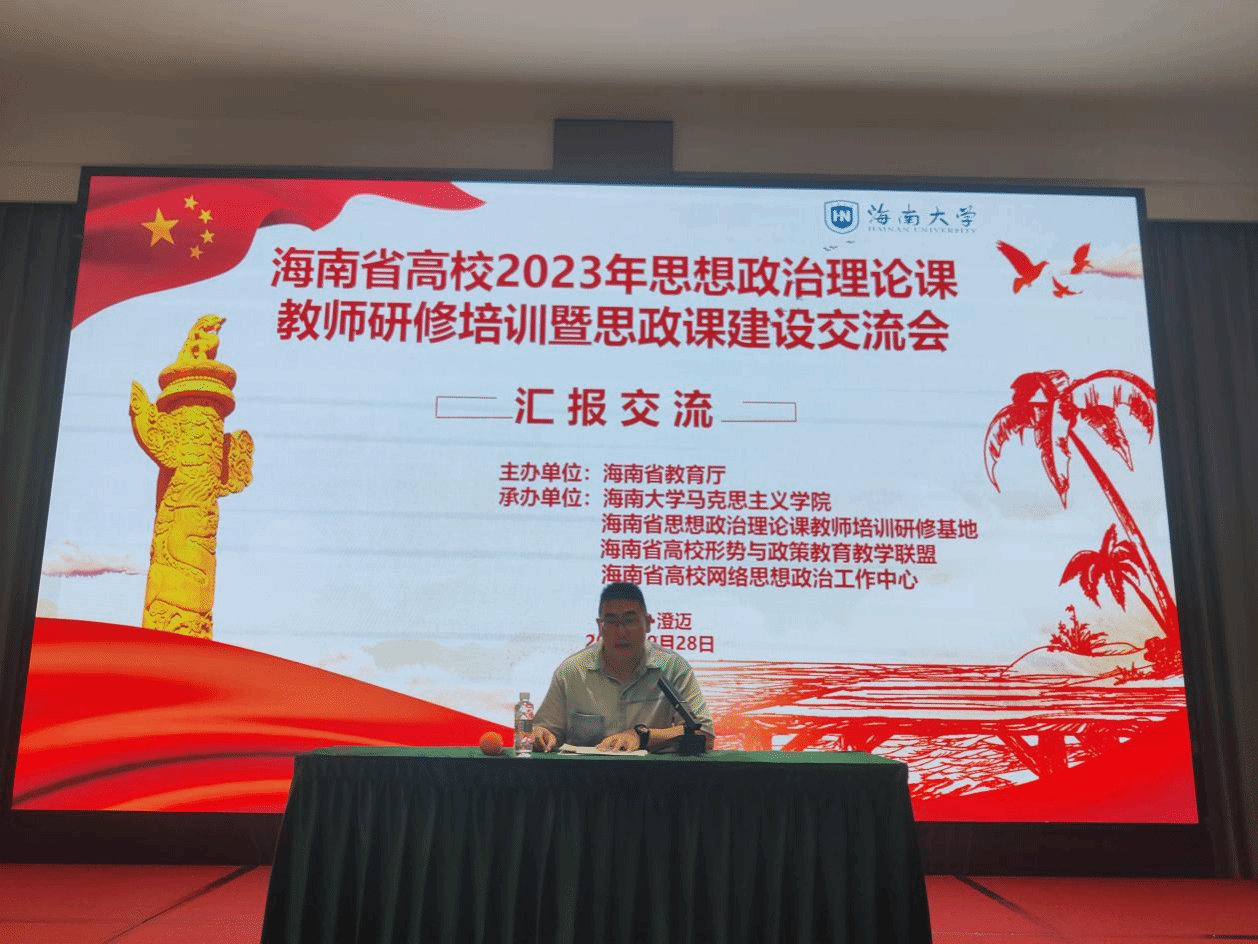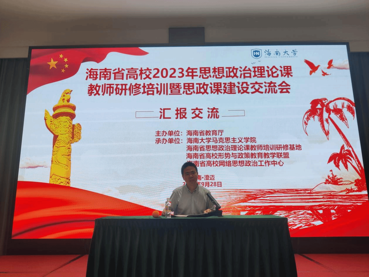 为深入贯彻落实党的二十大精神,提升我省高校思想政治理论课教师队伍建设水平,2023年9月25日至9月28日,海南省高校2023思想政治理论课教师研修培训暨思政课建设交流会在海南省澄迈县举行。本次研修班由海南省教育厅主办,Beat365唯一官方网站、海南省思想政治理论课教师培训研究基地、海南省高校形势与政策教育教学联盟和海南省高校网络思想政治工作中心承办,来自海南省内22所高校95位思政课教师参会。