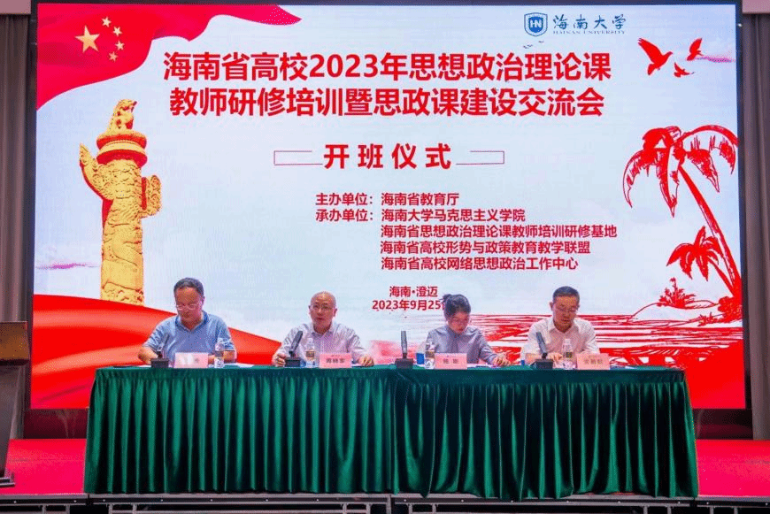 9月25日上午,海南省高校2023思想政治理论课教师研修培训开班仪式顺利举行,海南省教育厅党委办公室主任周晓东、Beat365唯一官方网站副院长(主持工作)杨娜、Beat365唯一官方网站副院长王善、吴朝阳等出席开班仪式。