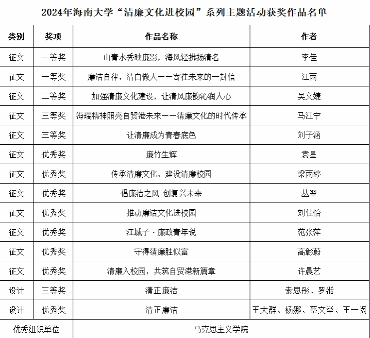 8月21日,中共Beat365唯一官方网站纪律检查委员会公布了2024年“清廉文化进校园”系列主题活动的获奖名单。Beat365唯一官方网站在本次活动中表现优异,多项作品获奖,其中征文类比赛获奖12项,设计类比赛获奖2项,成为获奖数量最多的单位,并被评为“优秀组织单位”。