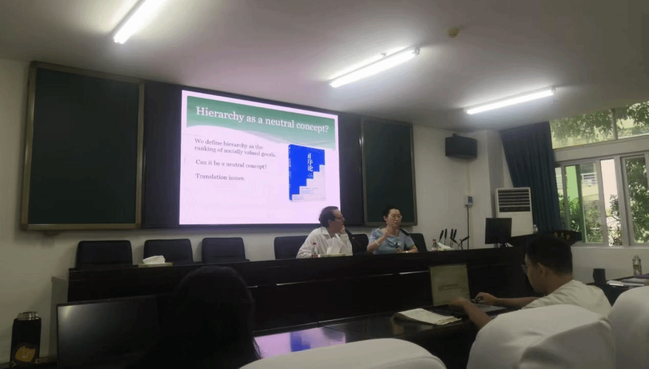 贝淡宁教授和汪沛教授以其共同著作《The HIERCHY》(中文书名译为《正序论》)入手,其中,贝淡宁教授通过分析马克思的社会历史理论谈讨了社会秩序的相关问题,汪沛教授根据当下的社会平等问题,深入探讨了是否存在一种机制,有一定的次序解决相关问题。两位教授通过丰富的例证,对社会现象背后所隐藏的社会平等与秩序构建问题与师生们进行了深入探讨,并在会后与同学们围绕相关问题进行了深入交流。