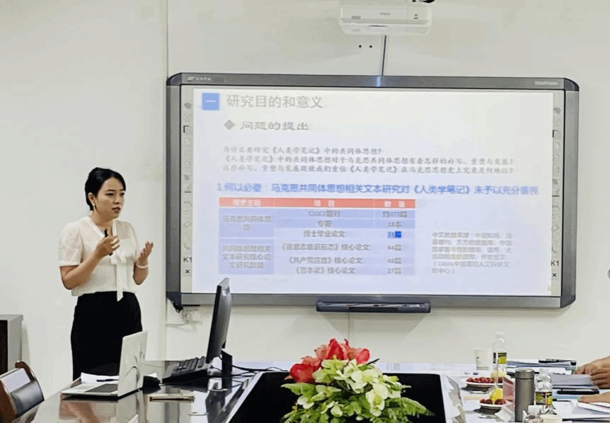 开题答辩流程包含答辩陈述、专家提问评审、学生应答和专家组商讨决议四个环节。答辩过程中,四名博士生依次有序进行答辩陈述,围绕论文选题目的、意义、主要框架内容、研究方法及创新点等方面展开阐述观点。专家认真听取每位同学的报告,针对论文结构、创新点等关键要素细致指出论文不足并提出修改意见。同学们积极应答问题,同步做好记录以查缺补漏。在答辩会最后环节,专家评审小组对四名同学是否通过此次论文开题答辩形成决议,并将答辩结果公布。
