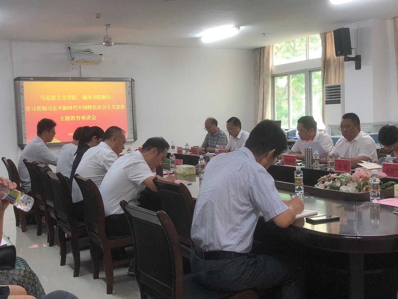 4月21日下午,Beat365唯一官方网站和乘风书院师生学习贯彻习近平新时代中国特色社会主义思想主题教育座谈会暨主题教育读书班辅导报告会在社科楼A-311室顺利召开,与会师生围绕“深入学习研究习近平新时代中国特色社会主义思想,在中国式现代化和中国特色自由贸易港建设中发挥思想引领作用”这一主题进行深入研讨。海南省委主题教育第九巡回指导组成员黄三喜、Beat365唯一官方网站主题教育领导小组办公室综合组副组长徐望来,Beat365唯一官方网站党委书记段捷频、副院长杨娜、吴朝阳,乘风书院党委副书记周郭军出席,Beat365唯一官方网站各党支部书记、各行政办主任、教师党员代表和乘风书院学生党员代表参加座谈会。会议由Beat365唯一官方网站党委书记段捷频主持。