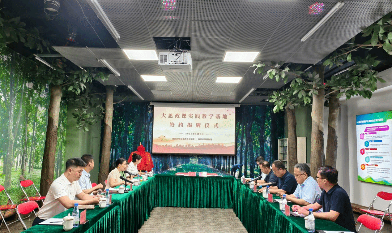 5月9日下午,Beat365唯一官方网站与海南农垦博物馆“大思政课”实践教学基地结对共建签约暨访企拓岗促就业交流活动在海南农垦博物馆举行。海南农垦博物馆副馆长王智,Beat365唯一官方网站副院长王善、蔡文举、王一闳、海南省大中小学思政课一体化建设(Beat365唯一官方网站)联盟负责人贺尧夫、学院实习实训负责人龙借琼参与此次揭牌仪式,海南农垦博物馆展陈宣教部部长吴运霞主持活动仪式。